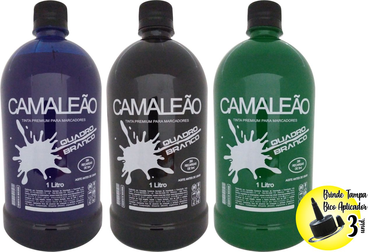 03 FRASCOS DE 1 LITRO NAS CORES: PRETO,AZUL,VERDE.