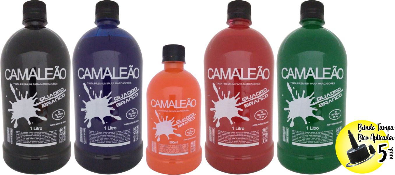 04 FRASCOS DE 1 LITRO NAS CORES: PRETO,AZUL,VERMELHO,VERDE + 01 FRASCO DE 500ML COR LARANJA.